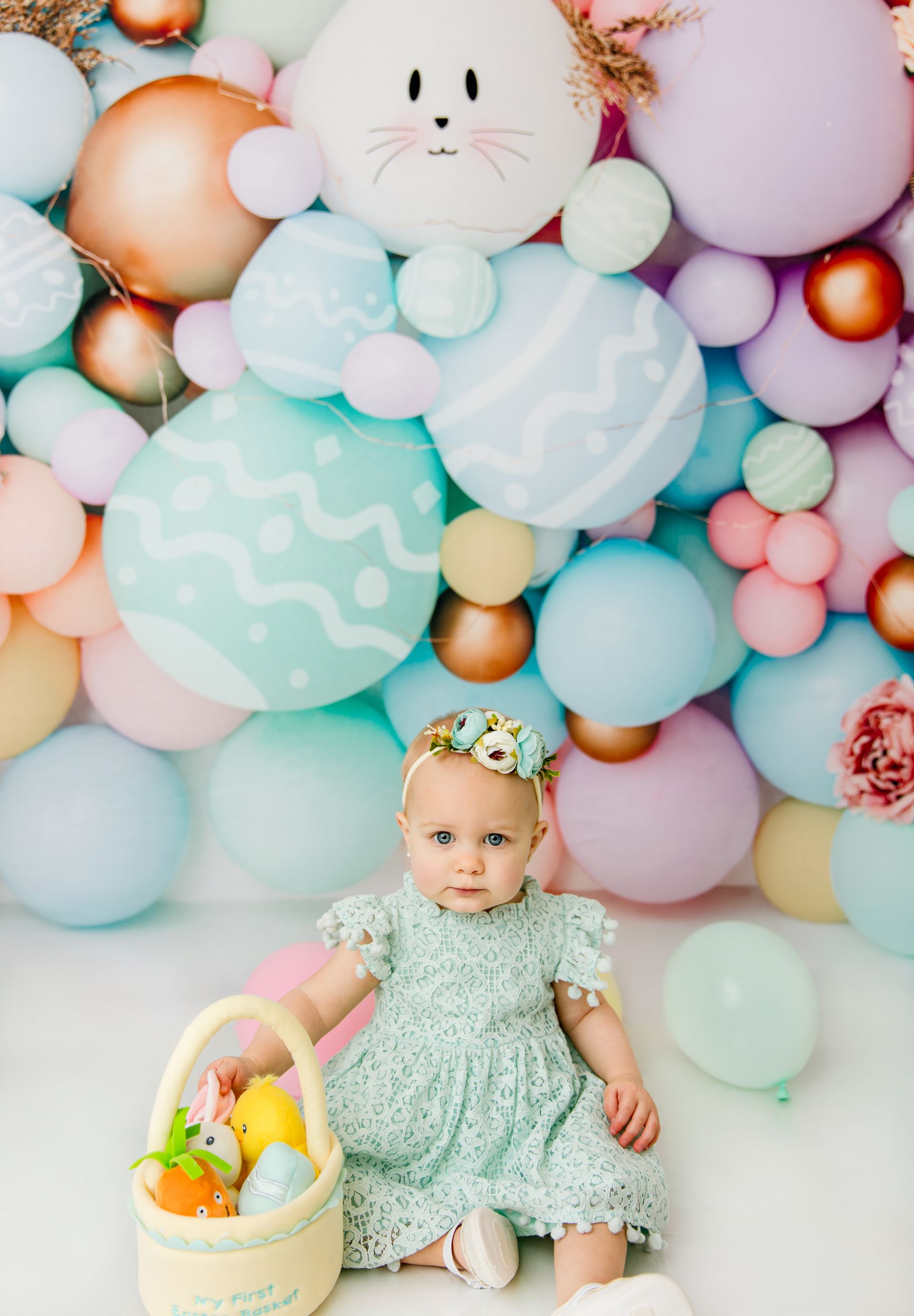 Easter Mini Sessions take place in my in-home private studio, designed with soft light, pastel tones, and a beautifully curated Easter setup.