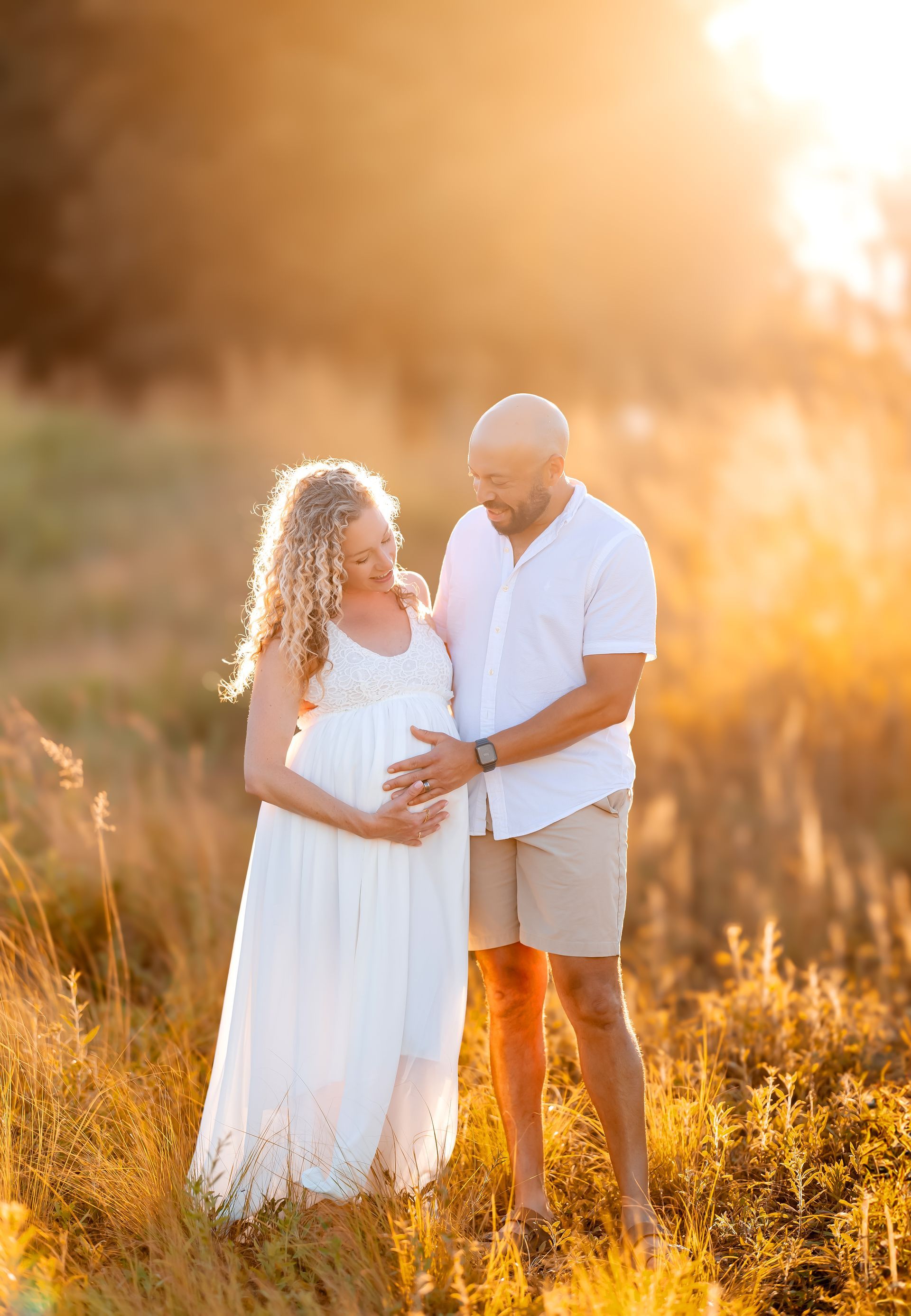 Golden hour refers to the time shortly after sunrise or before sunset, when the sun is low in the sky and creates a flattering, golden light. It naturally softens shadows, smooths skin tones, and creates a dreamy, ethereal atmosphere that’s perfect for maternity photos.