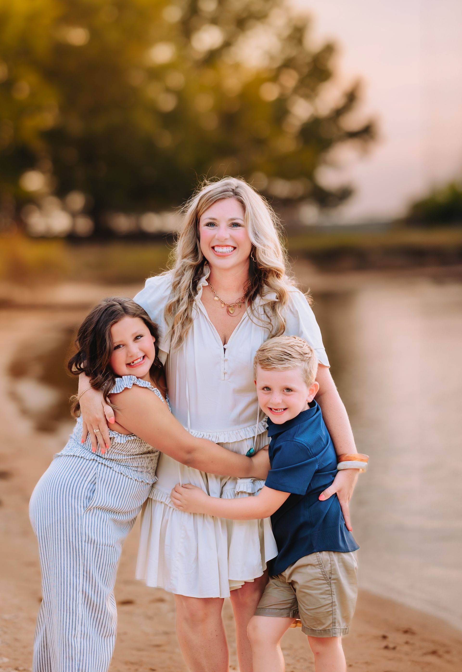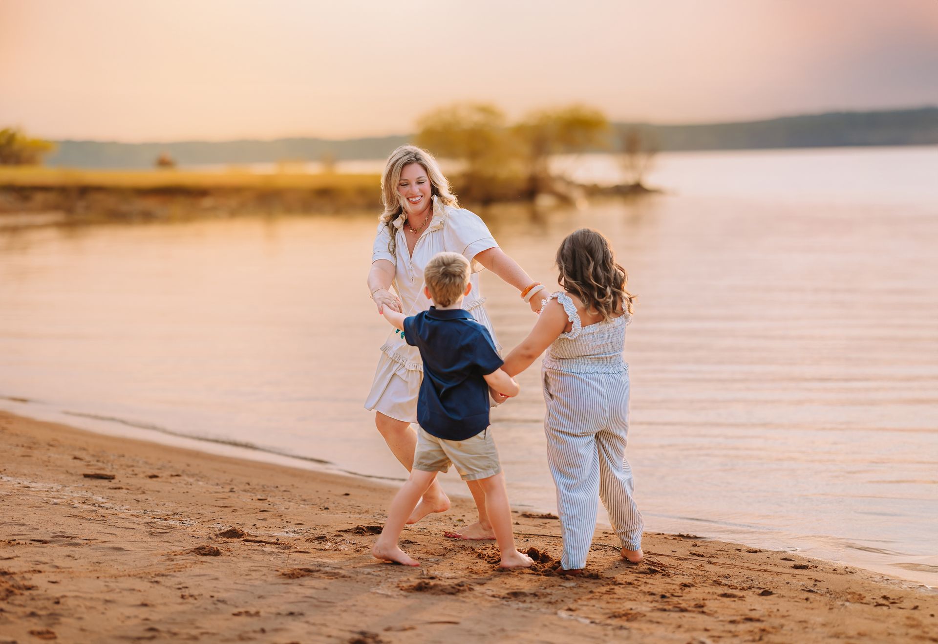Your session takes place beside a beautiful Jordan Lake shore in the Raleigh/Cary area, where your reserved time ensures a beautiful portrait session experience. The natural setting allows for gentle movement, candid moments, and a wide variety of images, from golden-hour reflections to playful lakeside interaction.