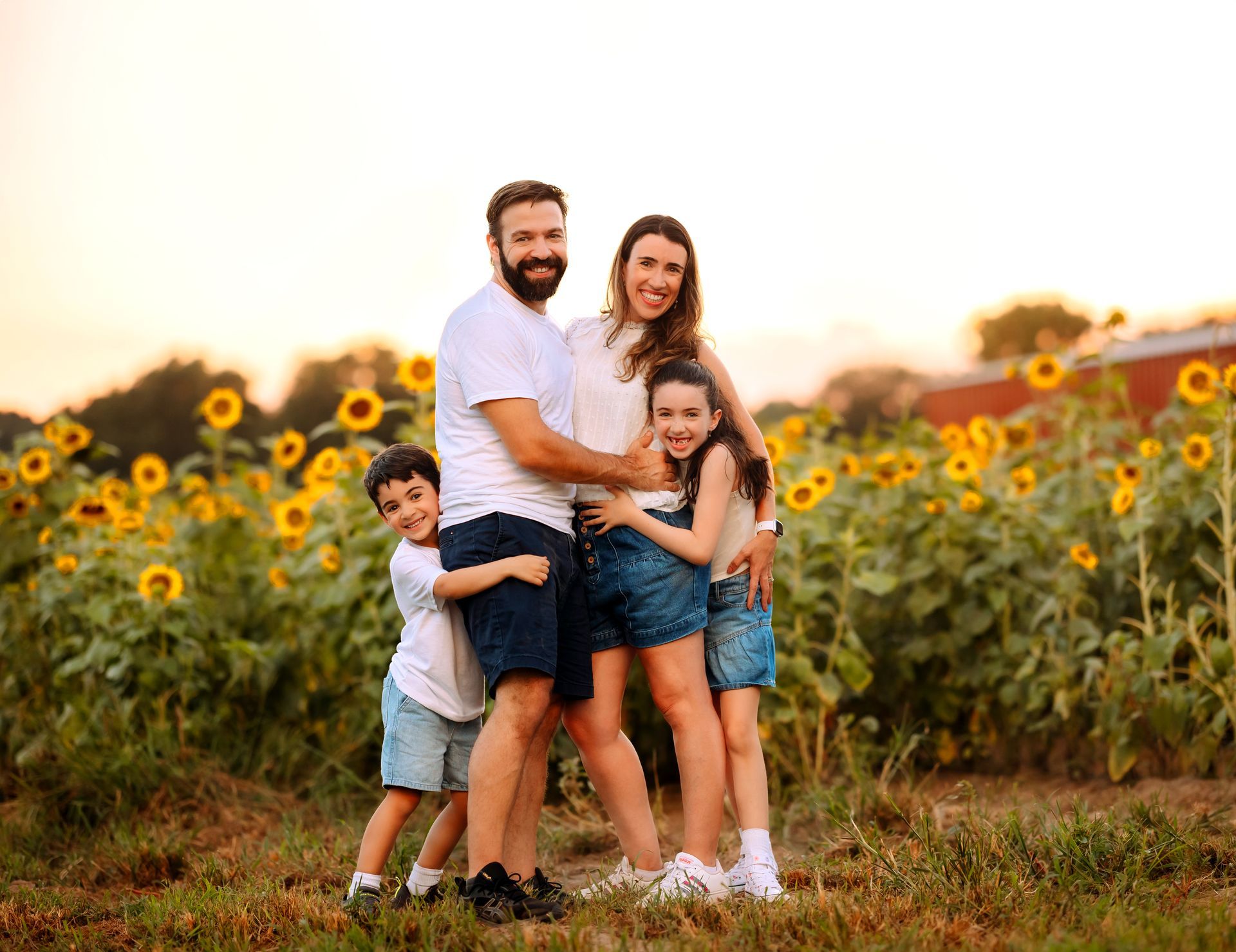 A joyful summer experience in a vibrant sunflower field, designed to preserve natural family moments.